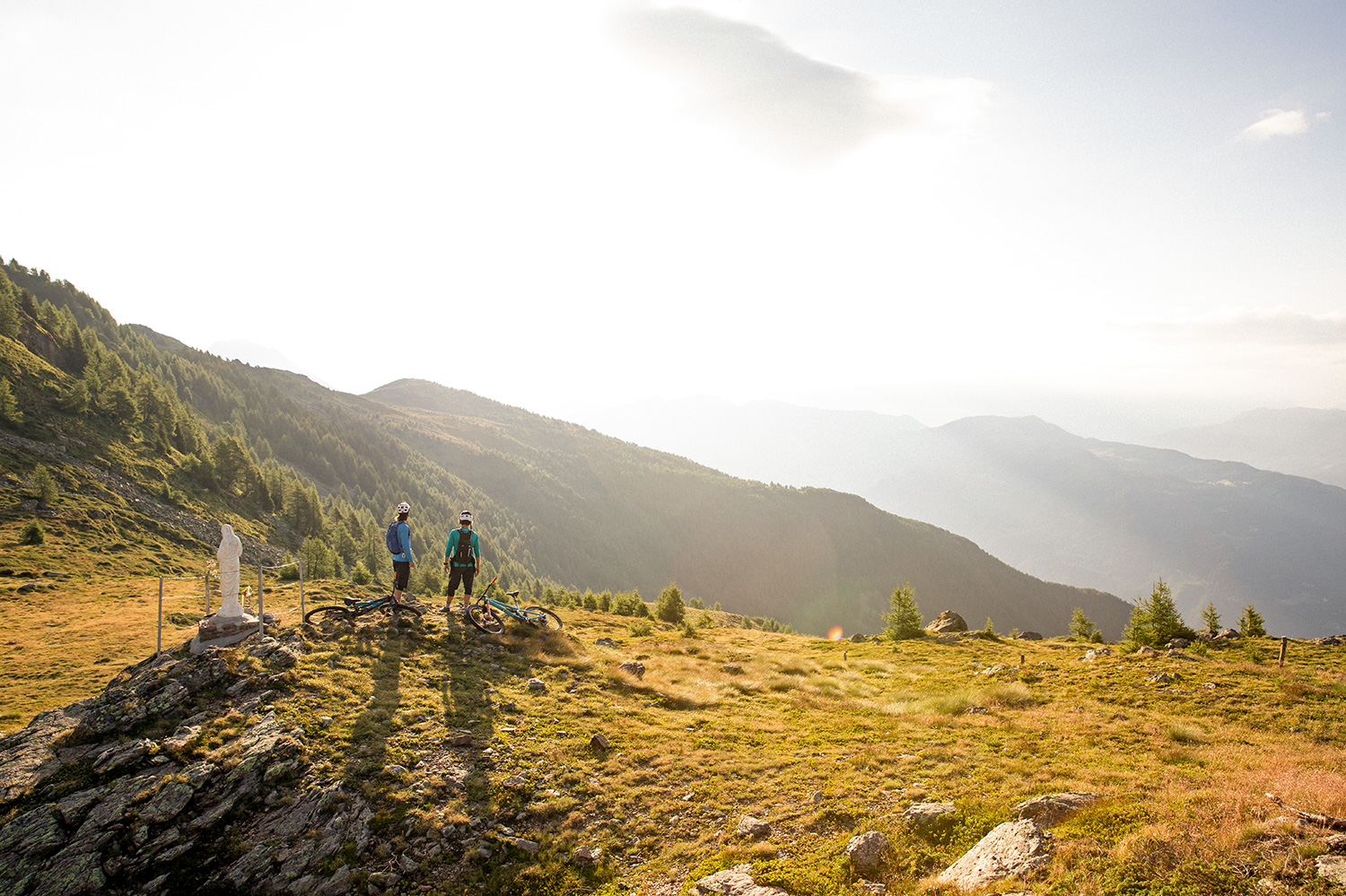 Grobe Naturstrassen, technische Singletrails mit Stufen und Wurzeln, Schiebe- und Tragestrecken sowie kurze exponierte Stellen möglich. Sie haben Erfahrung und verfügen über eine gute Fahrtechnik. (S1-S2 in der Singletrailskala. Kurze S3-Abschnitte möglich)