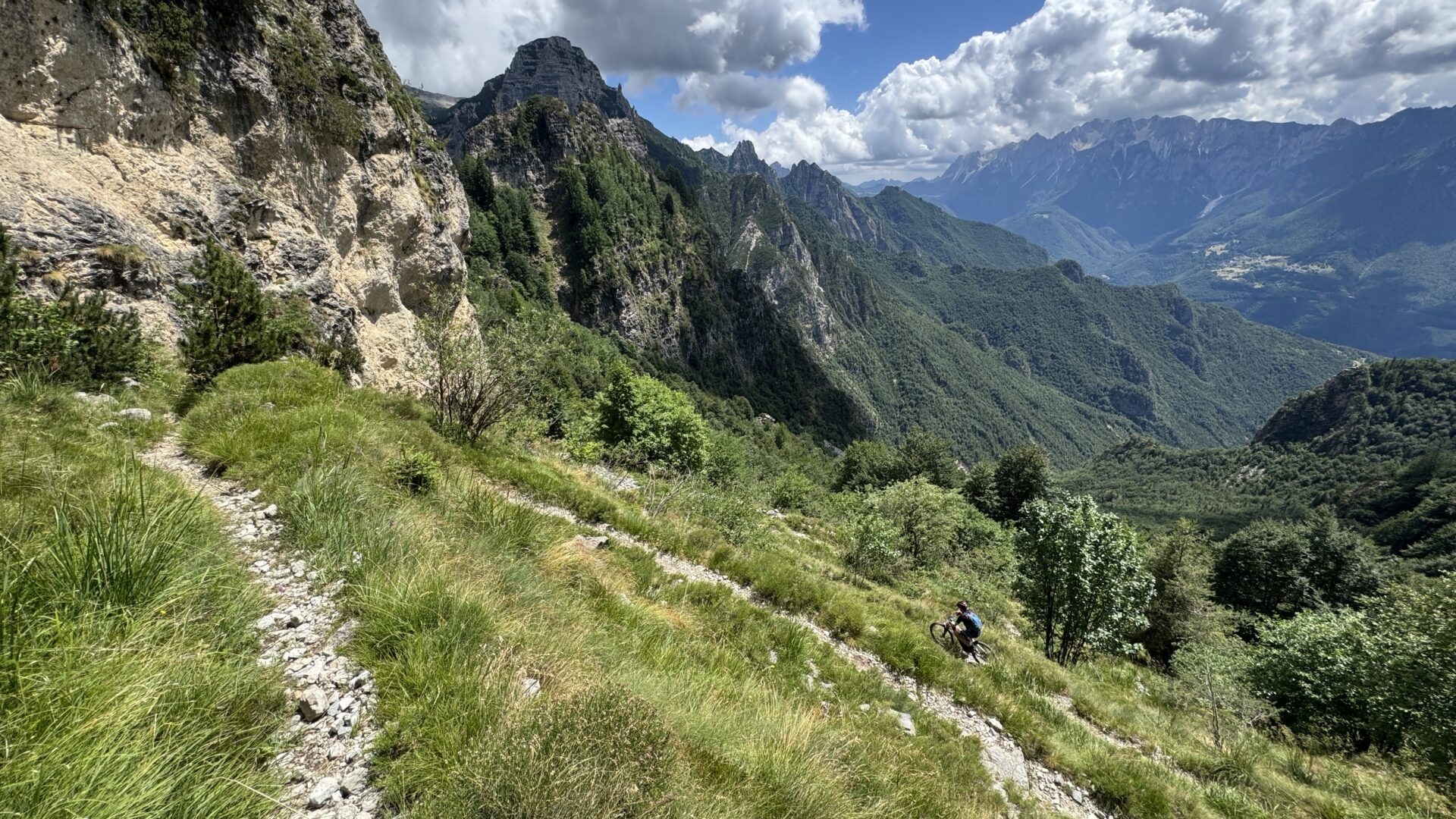 Grobe Naturstrassen, technische Singletrails mit Stufen und Wurzeln, Schiebe- und Tragestrecken sowie kurze exponierte Stellen möglich. Sie haben Erfahrung und verfügen über eine gute Fahrtechnik. (S1-S2 in der Singletrailskala. Kurze S3-Abschnitte möglich)