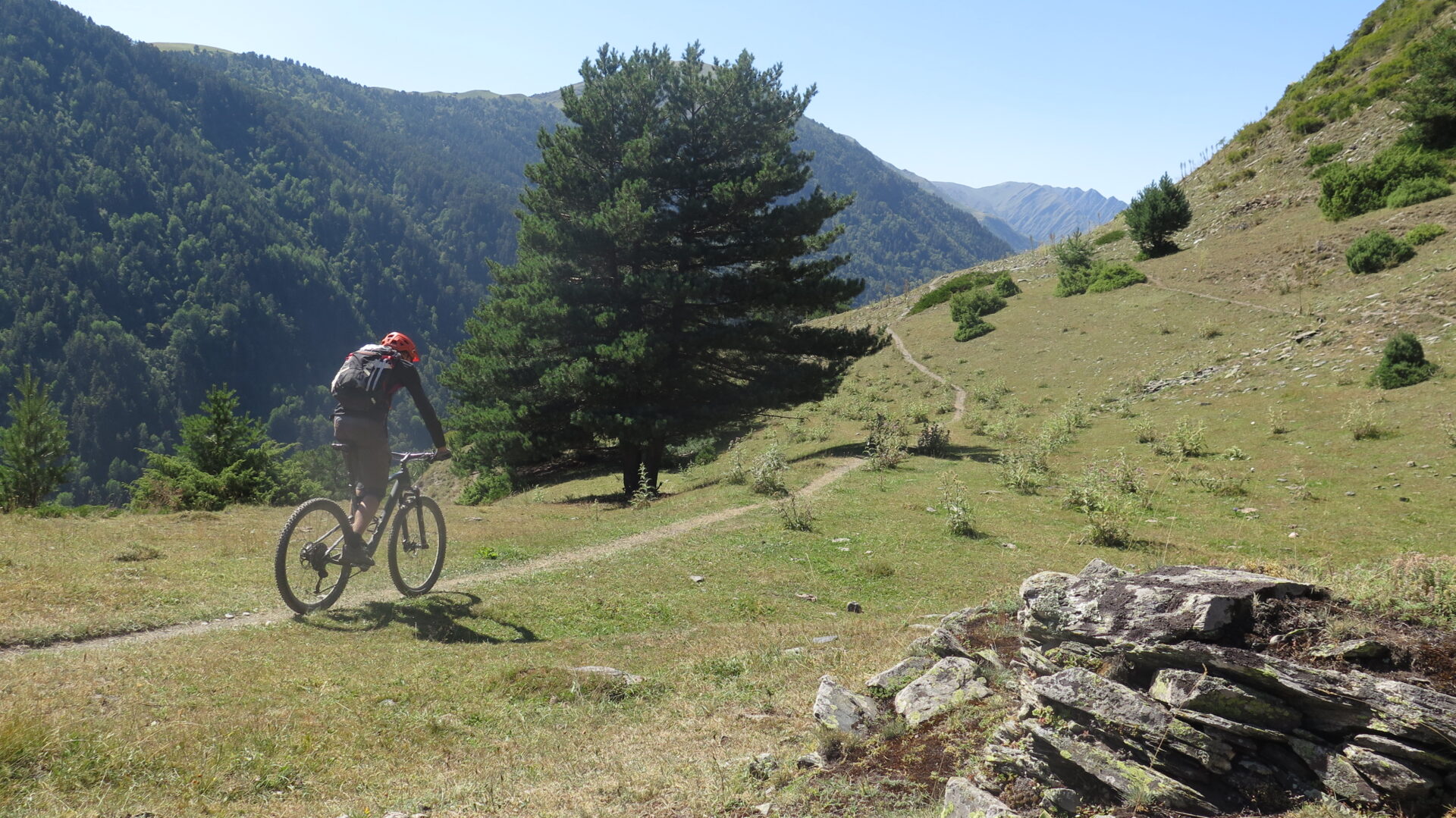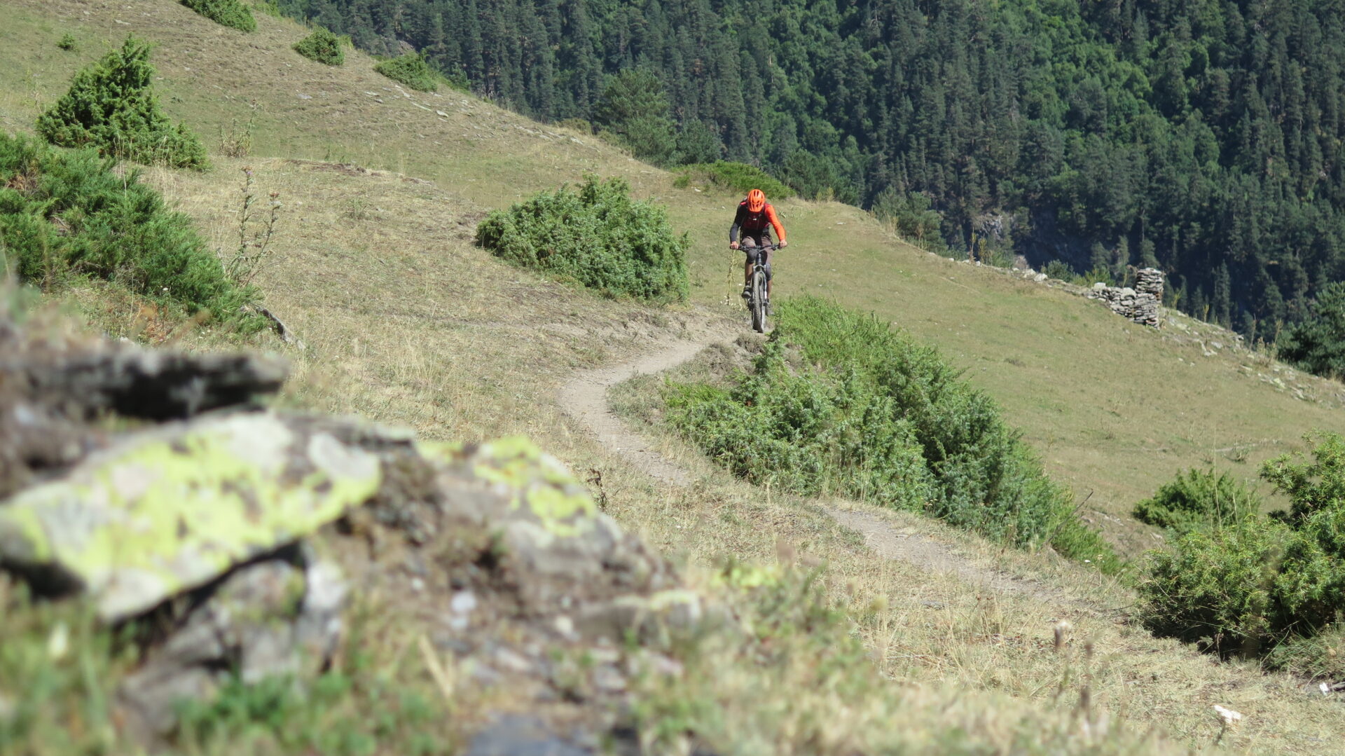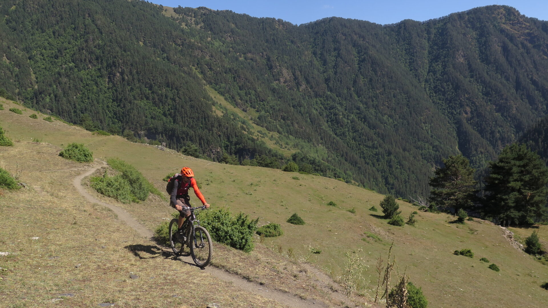 Grobe Naturstrassen, technische Singletrails mit Stufen und Wurzeln, Schiebe- und Tragestrecken sowie kurze exponierte Stellen möglich. Sie haben Erfahrung und verfügen über eine gute Fahrtechnik. (S1-S2 in der Singletrailskala. Kurze S3-Abschnitte möglich)