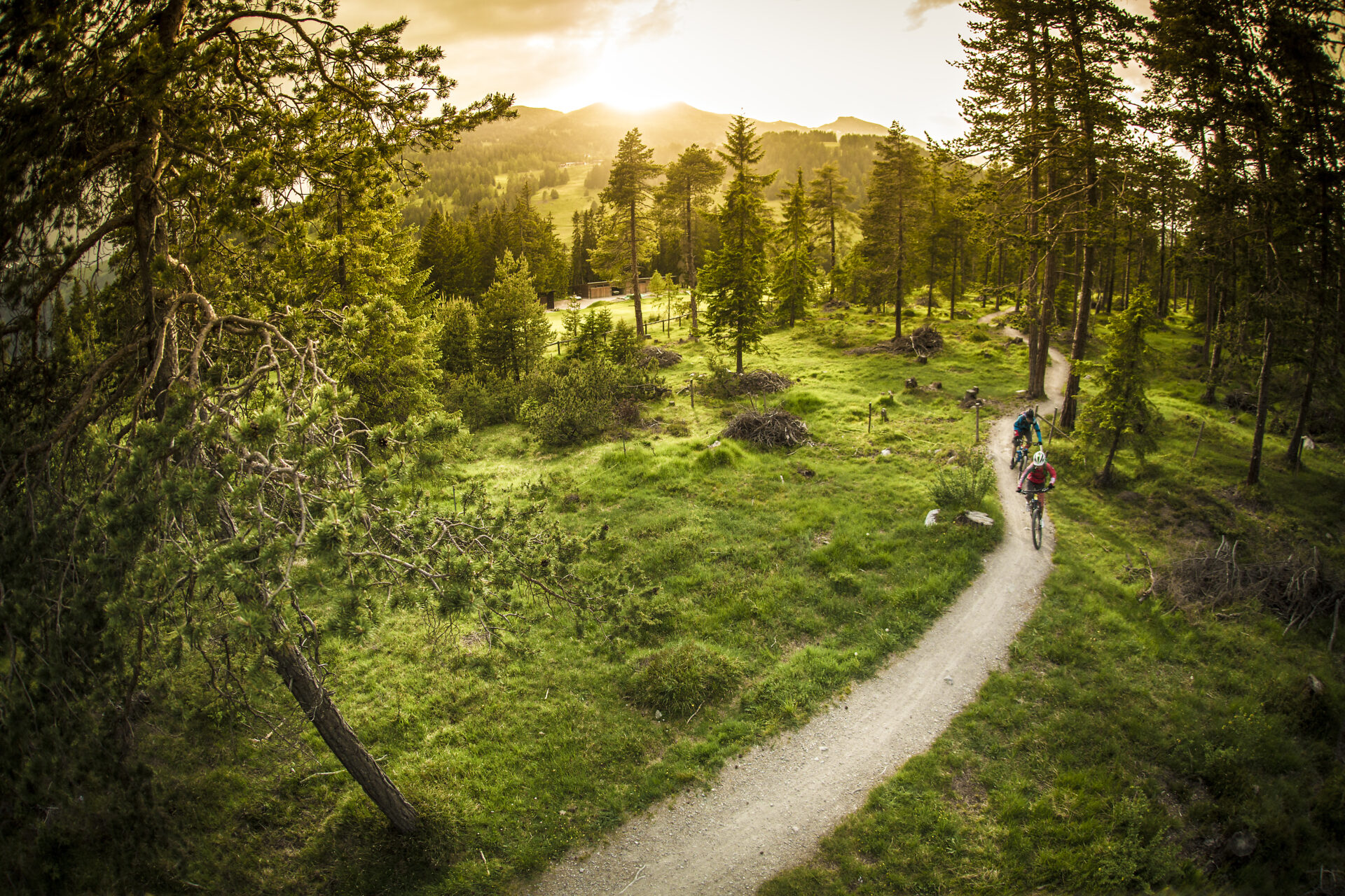Einfache Singletrails, breite Forst- und Naturwege, wenig befahrene, schmale Teer- und Passstrassen. Keine Tragestrecken und ausgesetzte Stellen. Sie verfügen über eine gewisse Erfahrung im Gelände. (S0 auf der Singletrailskala)